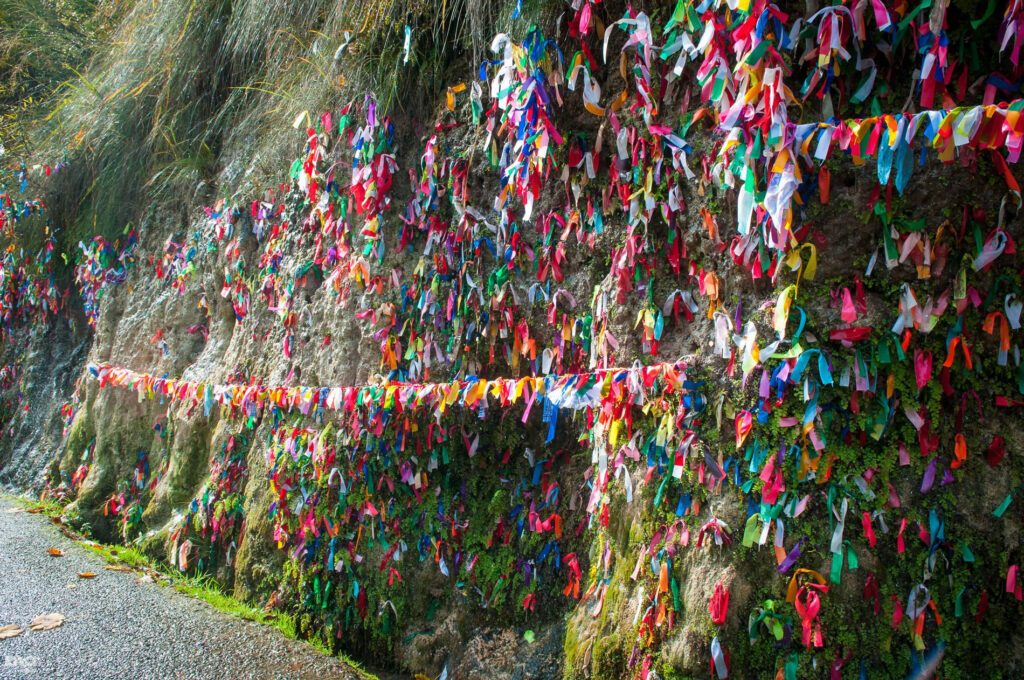 У «Девичьих слез» завязывают ленточки на счастье — говорят, желания, загаданные здесь с чистым сердцем, сбываются.
