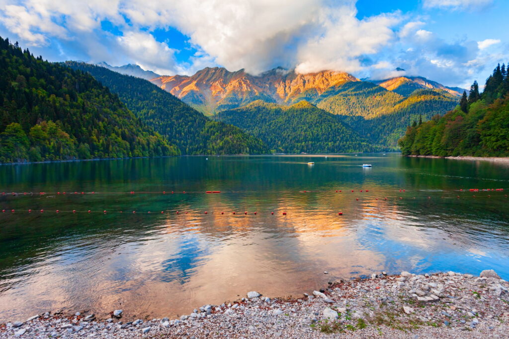 Кульминация дня. Высокогорное озеро на высоте 950 метров в окружении густых лесов и гор-великанов. Вода здесь меняет цвет от лазурного до темно-изумрудного в зависимости от облаков. Здесь такой вкусный воздух, что его хочется «есть ложкой». У вас будет время прогуляться, насладиться тишиной и запечатлеть этот пейзаж в памяти.