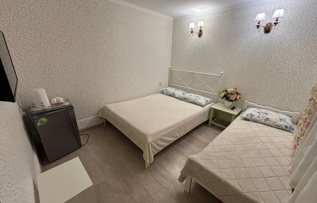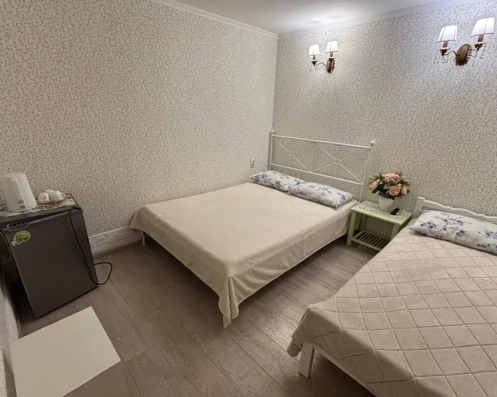 ОПИСАНИЕ: Номера со всеми удобствами для того, чтобы гости чувствовали себя максимально комфортно во время отдыха. Уборка номеров, а также смена постельного белья производиться на 4 — 5 день проживания. для удобства гостей есть небольшая кухня для самостоятельного приготовления.