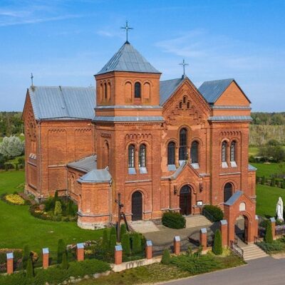 11:00 – 11:50 — Каменное кружево Сарьи. Далее наш путь лежит в деревню Сарья, где возвышается один из самых красивых храмов Беларуси — церковь Успения Пресвятой Богородицы. Этот неоготический шедевр из красного кирпича был возведен в середине XIX века как костел в память о любимой жене местного шляхтича Игнатия Лопатинского. Его утонченные формы и стремительные башни не оставят равнодушным никого.