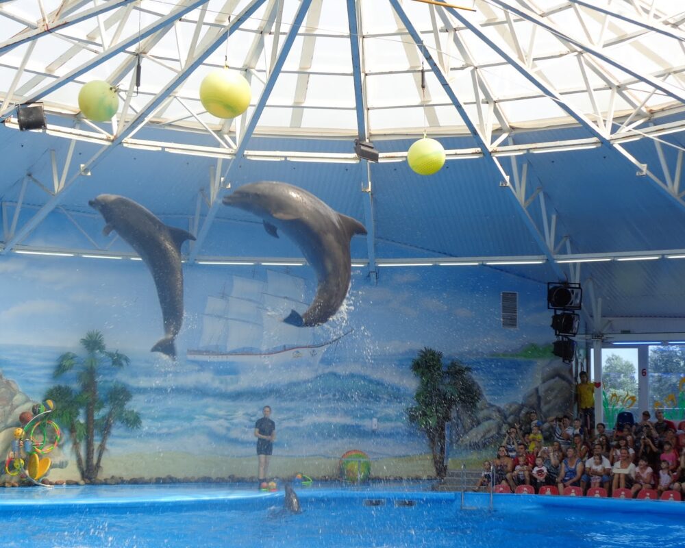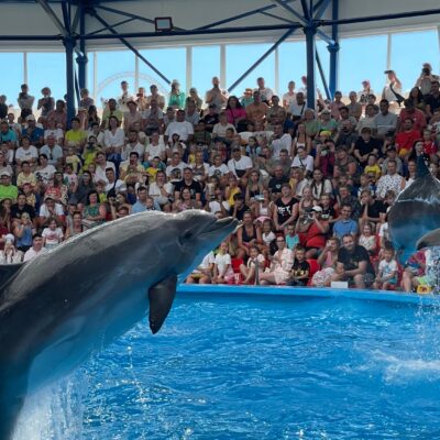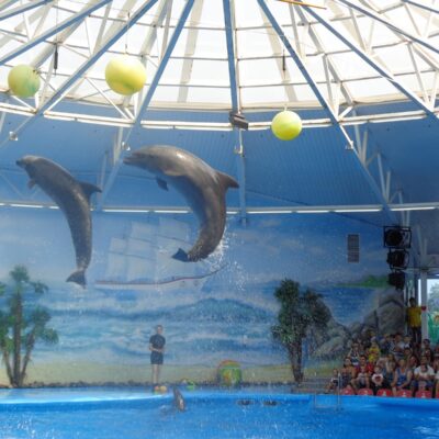 Приготовьтесь к захватывающему шоу в единственном дельфинарии Беларуси! Вас ждет феерическое представление с участием умнейших тихоокеанских дельфинов, очаровательных морских котиков и забавного морского льва. Вы увидите невероятные акробатические трюки, услышите, как дельфины поют, и даже сможете увидеть картины, нарисованные этими удивительными животными! Это не просто представление, а познавательное шоу, которое учит любить и беречь нашу планету и ее обитателей. -