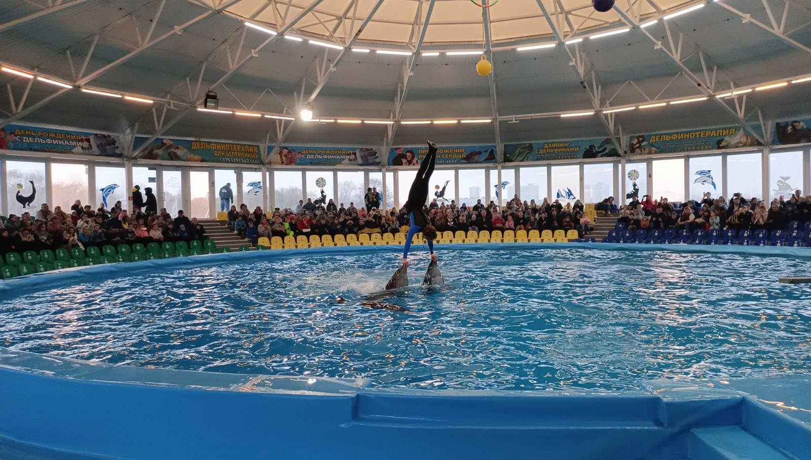 Приготовьтесь к захватывающему шоу в единственном дельфинарии Беларуси! Вас ждет феерическое представление с участием умнейших тихоокеанских дельфинов, очаровательных морских котиков и забавного морского льва. Вы увидите невероятные акробатические трюки, услышите, как дельфины поют, и даже сможете увидеть картины, нарисованные этими удивительными животными! Это не просто представление, а познавательное шоу, которое учит любить и беречь нашу планету и ее обитателей. -